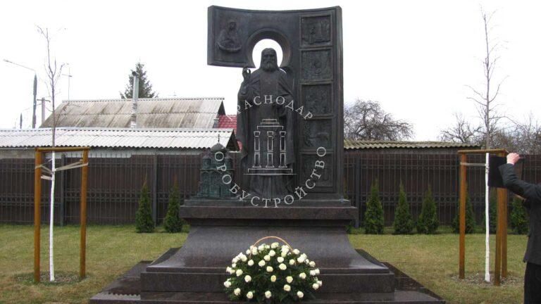 Скульптурная композиция, посвящённая русскому святому и чудотворцу, установлена у храма преподобного Серафима Саровского.