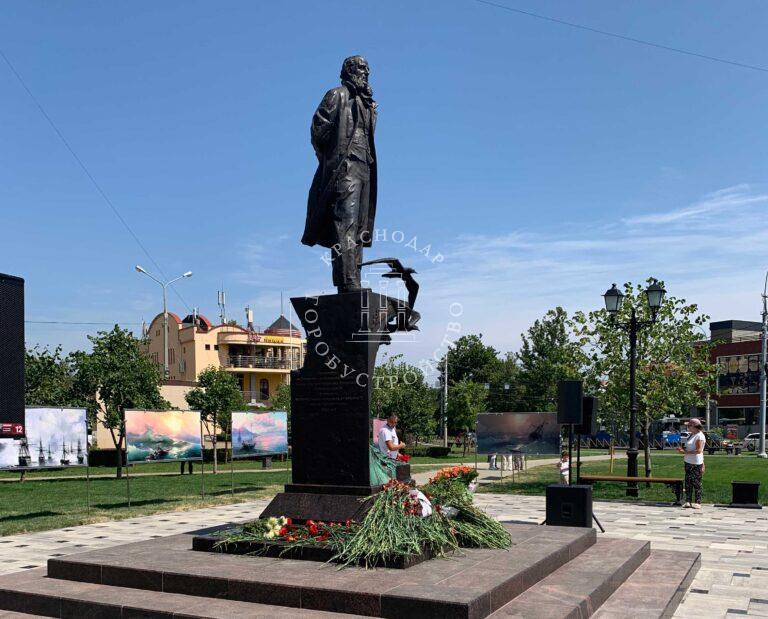 Пятиметровая фигура выдающегося российского художника-мариниста на пьедестале в виде волны с парусником и летящей чайкой установлена в Краснодаре по ул. Ставропольской.